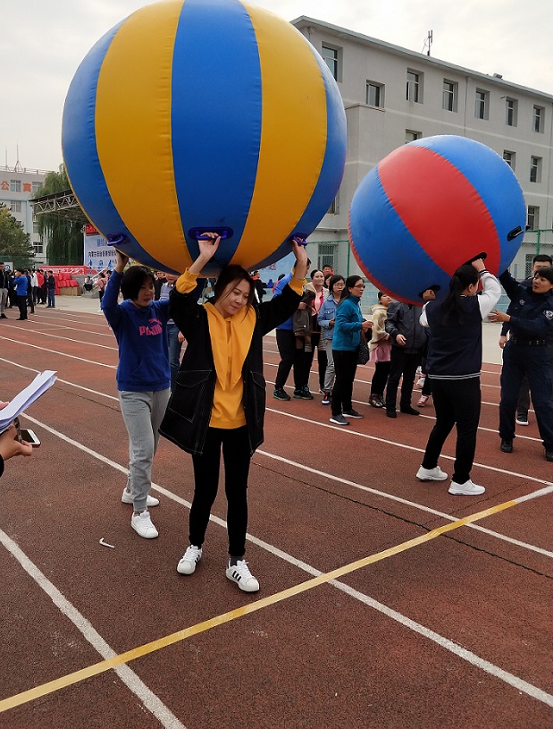 雙腿夾球接力。小于/攝