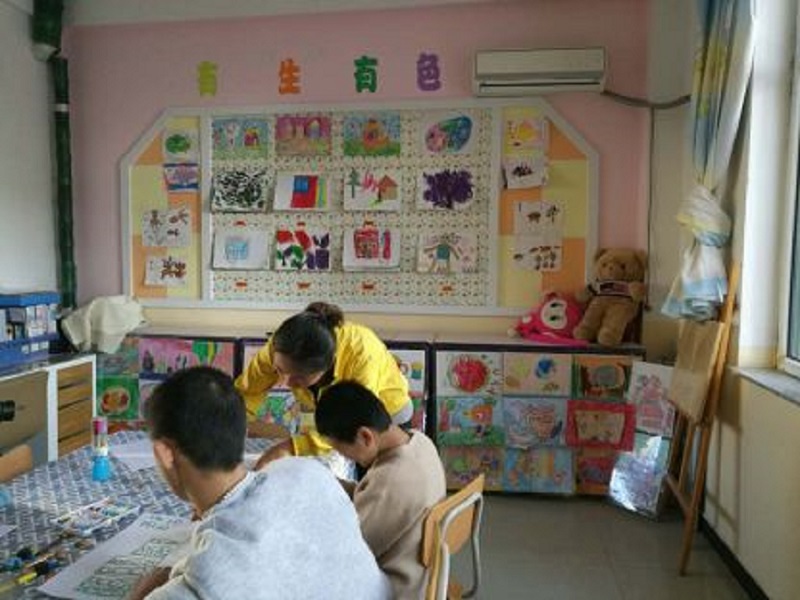 孩子們?cè)诨顒?dòng)室畫(huà)畫(huà)。小張/攝