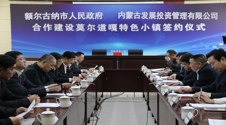 2017年3月31日,內(nèi)蒙古發(fā)展投資管理有限公司與額爾古納市人民政府參加合作建設(shè)莫爾道嘎特色小鎮(zhèn)簽約儀式。