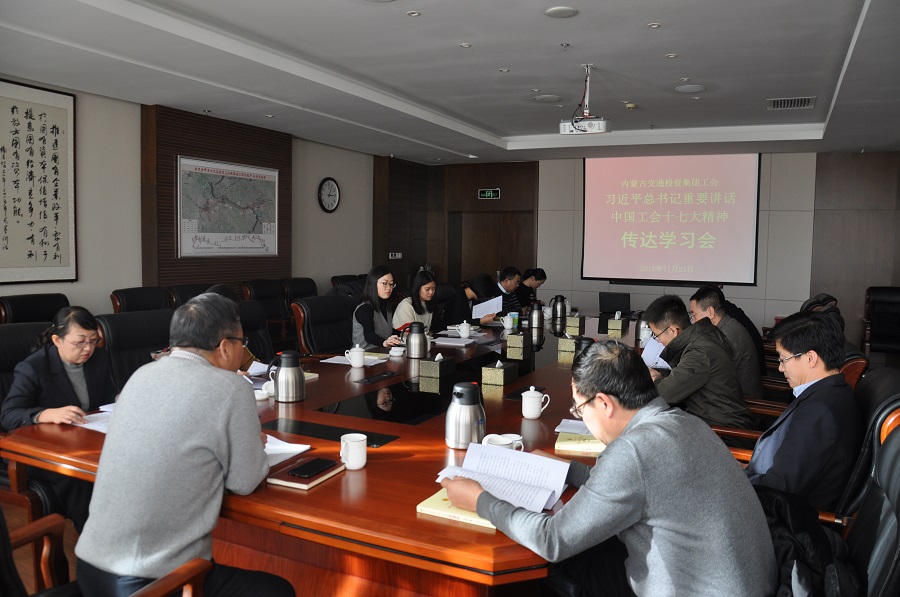 11月23日下午,內(nèi)蒙古交通投資(集團(tuán))公司工會(huì)召開(kāi)習(xí)近平總書(shū)記重要講話精神、中國(guó)工會(huì)十七大精神傳達(dá)學(xué)習(xí)會(huì),集團(tuán)工會(huì)副主席司瑞明主持會(huì)議并講話,集團(tuán)工會(huì)各委員、各工會(huì)小組長(zhǎng)及所屬企業(yè)工會(huì)主席參加了此次學(xué)習(xí)。