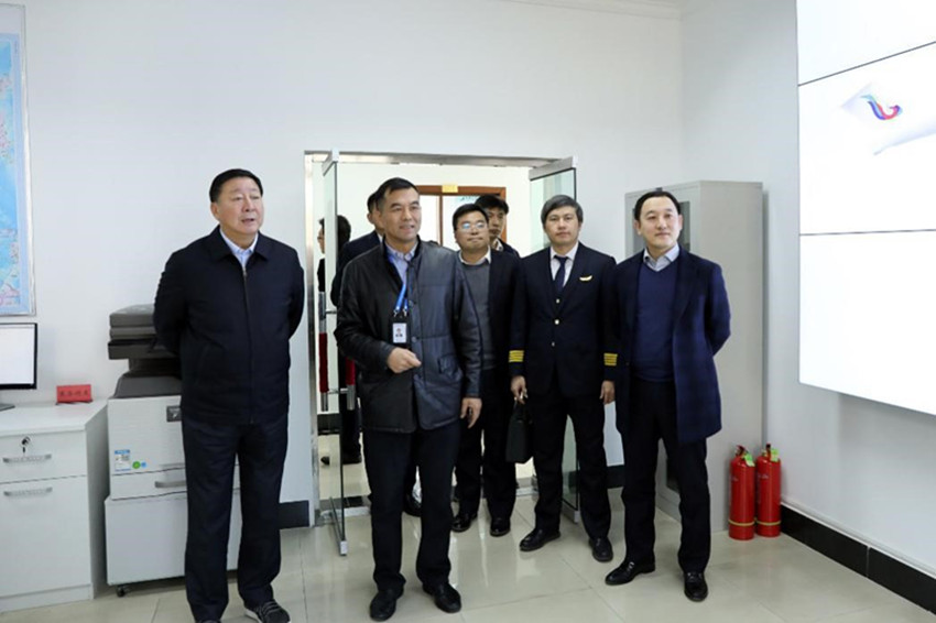 楊元元局長(zhǎng)參觀天驕航空AOC大廳。