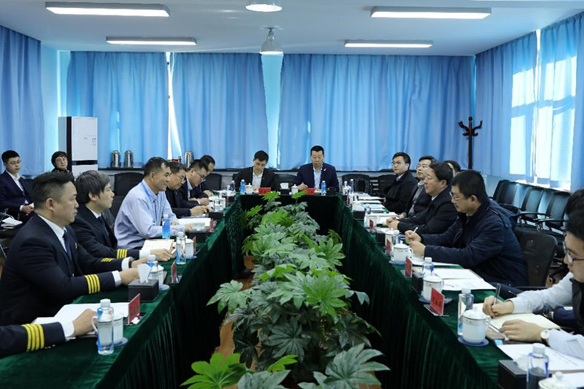 楊局長(zhǎng)與天驕航空飛行、維修、配載、性能、簽派等人員進(jìn)行了深入交流。