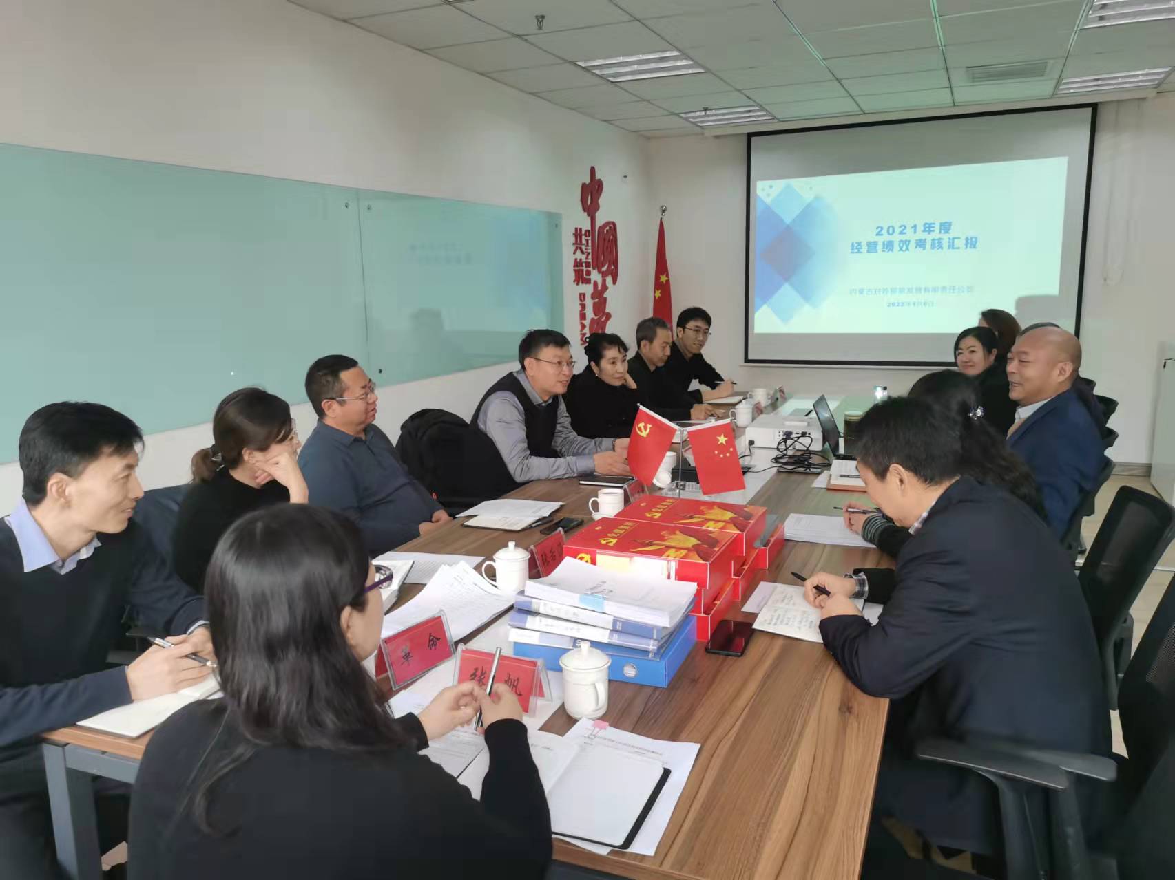 1月6日,按照內(nèi)蒙古交投集團(tuán)2021年度綜合考核工作的統(tǒng)一安排,集團(tuán)黨委委員、副總經(jīng)理張東帶領(lǐng)第二考核組一行到內(nèi)蒙古外貿(mào)公司,對(duì)公司領(lǐng)導(dǎo)班子成員和整體經(jīng)營(yíng)情況進(jìn)行年度綜合考核。內(nèi)蒙古外貿(mào)公司領(lǐng)導(dǎo)班子成員及部分中層干部參加會(huì)議。