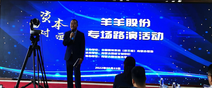 8月22日,內(nèi)蒙古發(fā)展投資公司應(yīng)邀參加由全國股轉(zhuǎn)系統(tǒng)(新三板)內(nèi)蒙古基地與內(nèi)蒙古股權(quán)交易中心聯(lián)合舉辦的資本面對(duì)面—錫林郭勒盟羊羊牧業(yè)股份有限公司專場(chǎng)路演活動(dòng)。