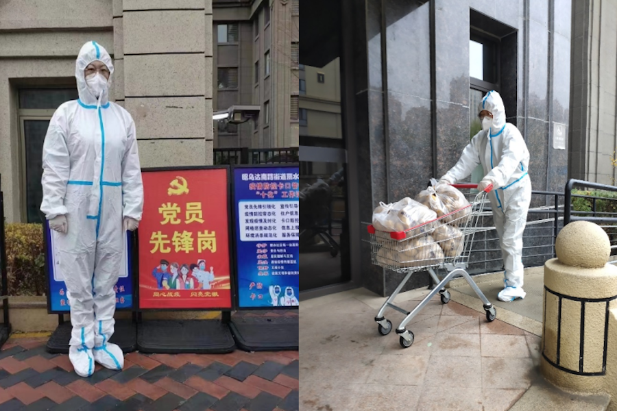 為保障疫情期間生活物資的安全通暢運(yùn)送,她協(xié)助物業(yè)為小區(qū)260戶居民配送物資。從小區(qū)大門到居民家門,一袋袋果蔬、米面油還有藥品,就這樣一趟趟連續(xù)來回運(yùn)送超過5個小時。雖說是深秋,厚重的防護(hù)服仍令人悶熱難耐,她沖鋒在前勇當(dāng)排頭兵,只言奉獻(xiàn)不計苦和累。