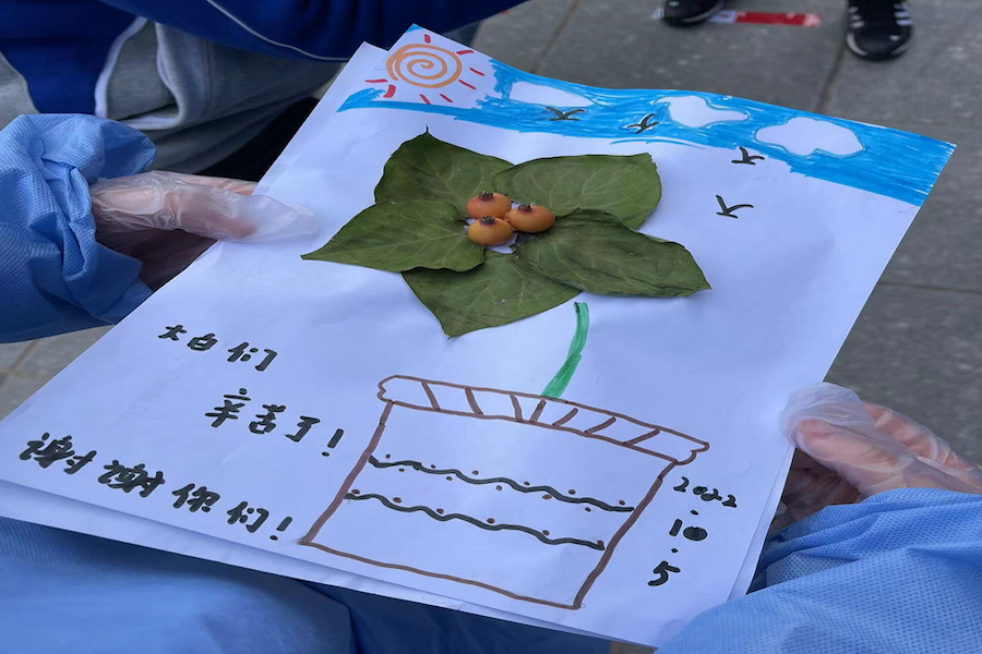 “阿姨,我有一幅畫要送給你們,謝謝你們!”前幾天,內(nèi)蒙古航旅集團(tuán)戰(zhàn)略規(guī)劃部職工張競正在協(xié)助核酸檢測時,一名小女孩拿著自己親手畫的畫送給她,用稚嫩又真摯的畫筆表達(dá)謝意。