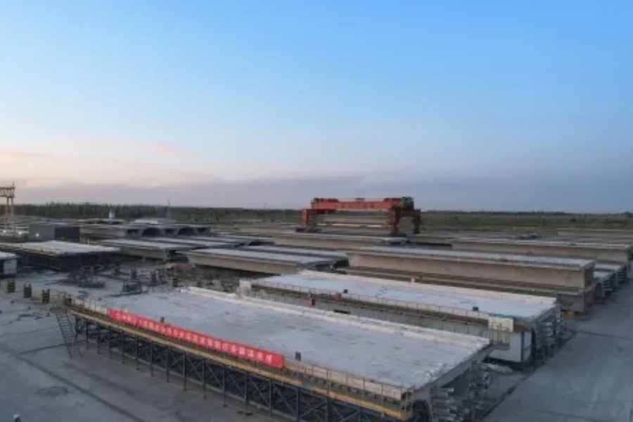 為嚴(yán)把質(zhì)量控制關(guān),項(xiàng)目建設(shè)方建立健全質(zhì)量控制體系,在制梁施工前,嚴(yán)格把好“圖紙審批、施工測(cè)量、材料進(jìn)出、檢驗(yàn)試驗(yàn)、技術(shù)交底、工藝操作、隱蔽工程檢查”五道關(guān)卡;在澆筑時(shí),安排地基沉降觀測(cè),及時(shí)加固異常變位處,有效解決了構(gòu)筑物沉降不均的問(wèn)題。為確保制梁作業(yè)順利完成,項(xiàng)目建設(shè)者加強(qiáng)對(duì)風(fēng)沙天氣的監(jiān)測(cè),及時(shí)了解風(fēng)力、風(fēng)向、沙塵濃度等信息,通過(guò)不同程序的加熱、保溫及防風(fēng)防雪措施,提升制梁澆筑應(yīng)對(duì)西北多變天氣的能力。