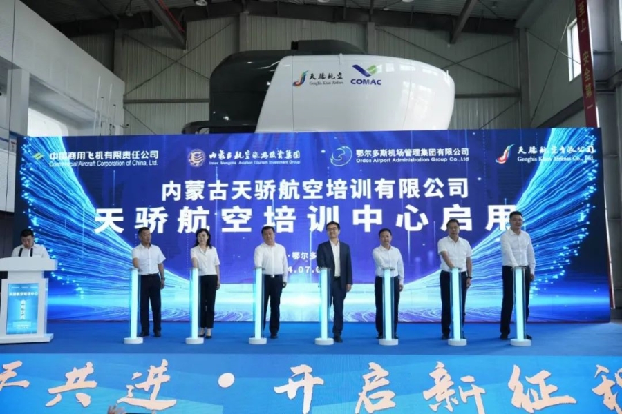 7月3日,內蒙古天驕航空培訓有限公司(以下簡稱“天驕航空培訓中心”)啟用儀式在鄂爾多斯市舉行。鄂爾多斯市副市長黃彥彰,中國商飛總會計師于世海,內蒙古交通投資集團黨委委員、副總經理劉建東,鄂爾多斯機場集團黨委書記、董事長屈樹清,天驕航空相關領導等出席活動。